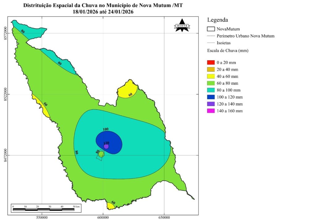 Na décima nona semana de monitoramento, completamos 133 dias de registros pluviométricos no município de Nova Mutum/MT, período que abrange o ciclo principal da cultura da soja. Em campo, observa-se que muitos agricultores já concluíram a colheita da soja e iniciaram o plantio do milho de segunda safra, caracterizando o atual momento como uma fase de transição entre as safras de grãos no Centro-Oeste.